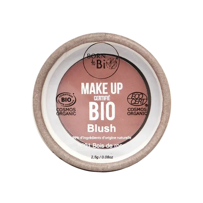 Blush poudre Certifié Bio, offrant un effet bonne mine naturel et lumineux, facile à moduler selon le look désiré.